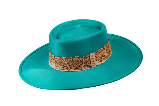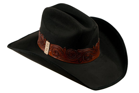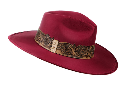 The Madrid Hat by Chida Frida is a perfect blend of elegance and bold craftsmanship. With its flat crown and wide brim, this timeless design draws inspiration from classic European style while adding a modern twist. Made from high-quality synthetic suede for a soft yet durable finish, each hat is adorned with a custom, hand-tooled leather band, showcasing intricate patterns and unique artistry. Sophisticated and versatile, the Madrid Hat is ideal for those looking to elevate their style with a statement piece that’s as distinctive as they are.